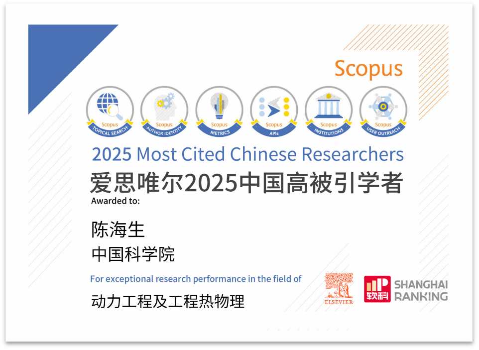 2026年1月30日,爱思唯尔(Elsevier)发布2025年“中国高被引学者”(Highly Cited Chinese Researchers)榜单,先进压缩空气储能技术创始人中国科学院工程热物理研究所陈海生研究员入选,这是他自2014年以来的连续第12次入选。